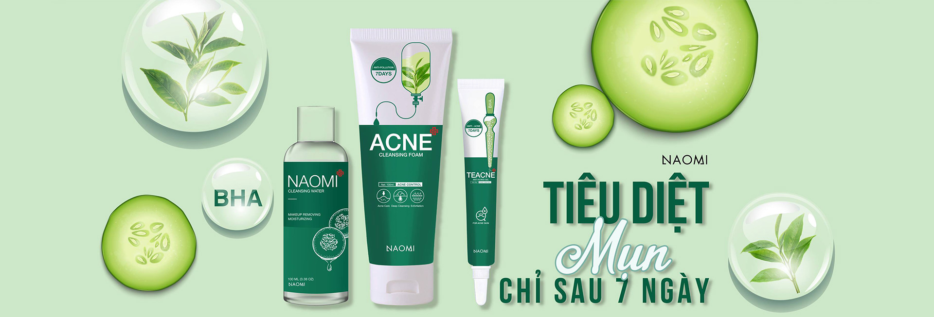 NAOMI BHA 7DAY SKINS là dòng sản phẩm chuyên trị các loại mụn cứng đầu lâu năm có sự kết hợp của BHA, trà xanh và dầu Olive giúp bề mặt láng mịn, làm tiêu vùng da bị nhiễm mụn và nuôi dưỡng làn da mềm mịn số 1 hiện nay.